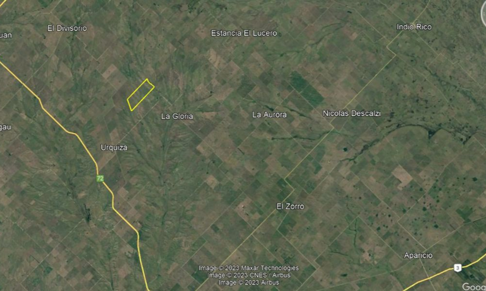 Campo en venta ubicado en el paraje La Gloria, partido de Coronel Dorrego. El establecimiento se encuentra a menos de 15 km de la Ruta Provincial 72, con acceso por camino real de tierra en dirección al paraje, y a aproximadamente 40 km de la ciudad de Coronel Dorrego.